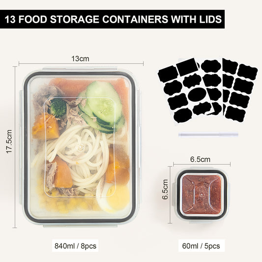 Food Storage Containers with Lids 13PCS: BPA-Free Airtight Meal Prep - Freezer Boxes Microwave Dishwasher Safe - Labels & Marker