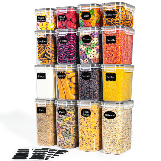 L LONGANCHANG Vorratsdosen 16er Set - Vorratsdosen mit Deckel luftdicht | Vorratsdosen Kunststoff Sans BPA | Aufbewahrungsbox mit Deckel Küche Organizer | Vorratsbehälter Nudeln Mehl Müsli Cornflakes