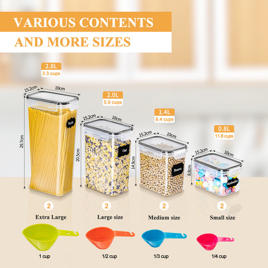 L LONGANCHANG Airtight storage containers with lids, set of 8, BPA-free, kitchen storage boxes, moth-proof kitchen organizers for cornflakes, muesli, and flour, storage containers with labels