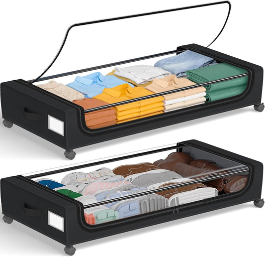 GoMaihe Under Bed Storage with Wheels: Extra Large Underbed Storage Containers with Lids - Rolling Bins for Shoes Clothes in Dorm Bedroom - Metal Drawers Easy Pull-out Grey 2-Pack