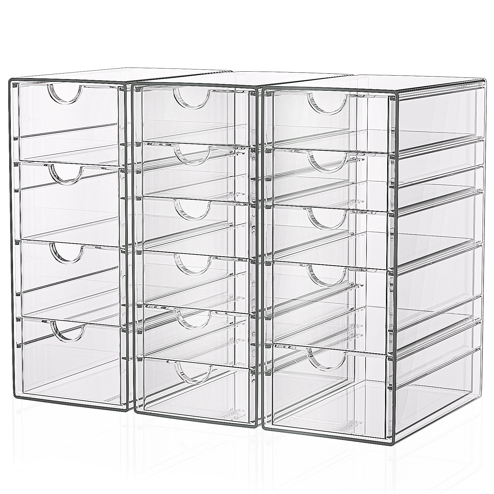 GoMaihe 3-Stücke Schubladenboxen Schreibtisch: Acryl Durchsichtig Schminktisch Organizer | Make up Organizer mit 15 Schubladen | Schreibtisch Organizer für Hause Büro Schule