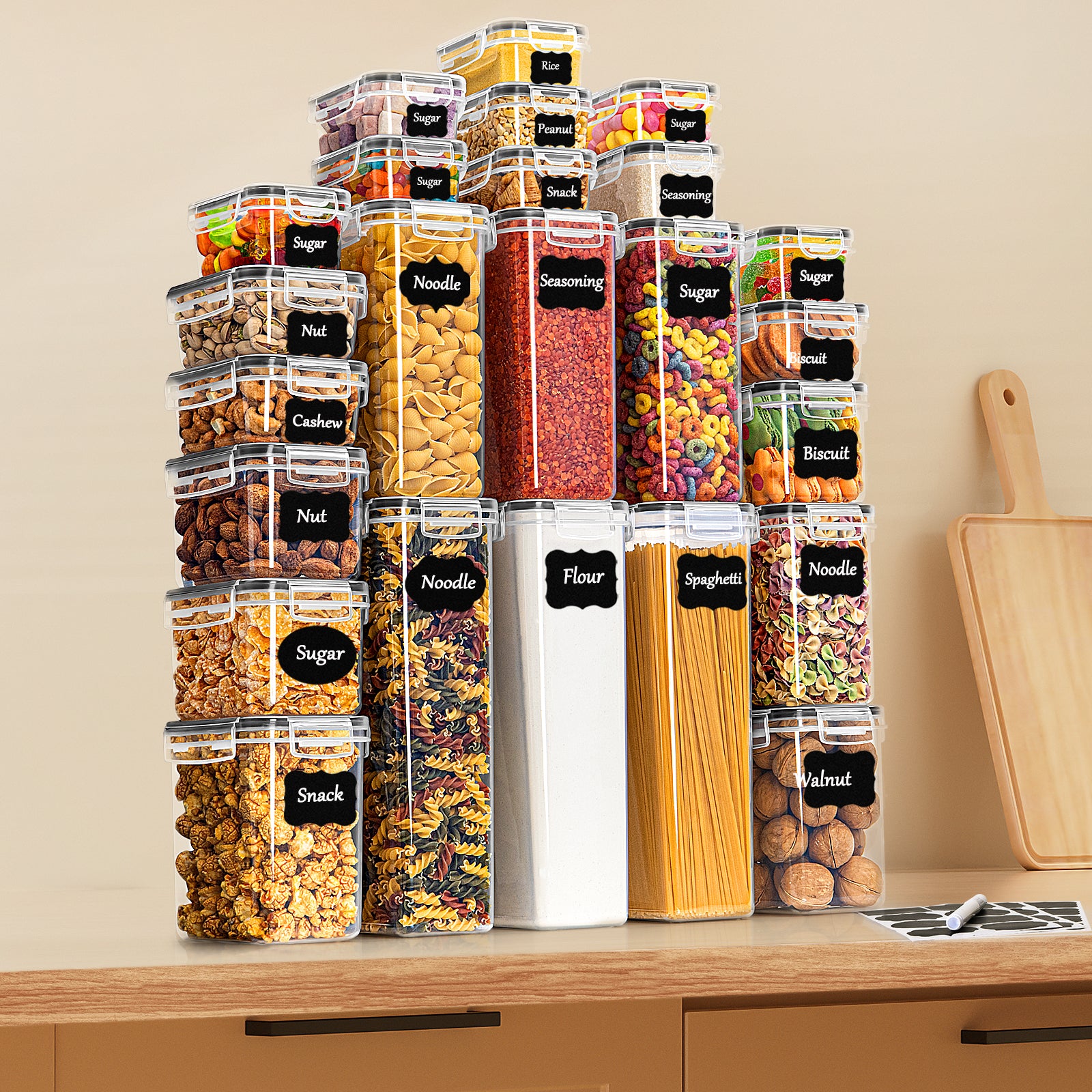 24-Piece Airtight Food Storage Containers Set – BPA-Free Kitchen Storage Boxes with Lids for Flour, Cereal, Pasta, Spaghetti, Dr