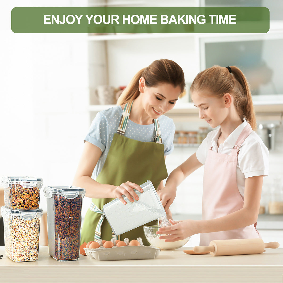 【100% AIRTIGHT & LEAKPROOF – LOCKS IN FRESHNESS】Each container features a secure 4-lock lid and silicone seal, keeping air and moisture out. Keeps dry ingredients fresher for longer – perfect for flour, muesli, oats, pasta or coffee.